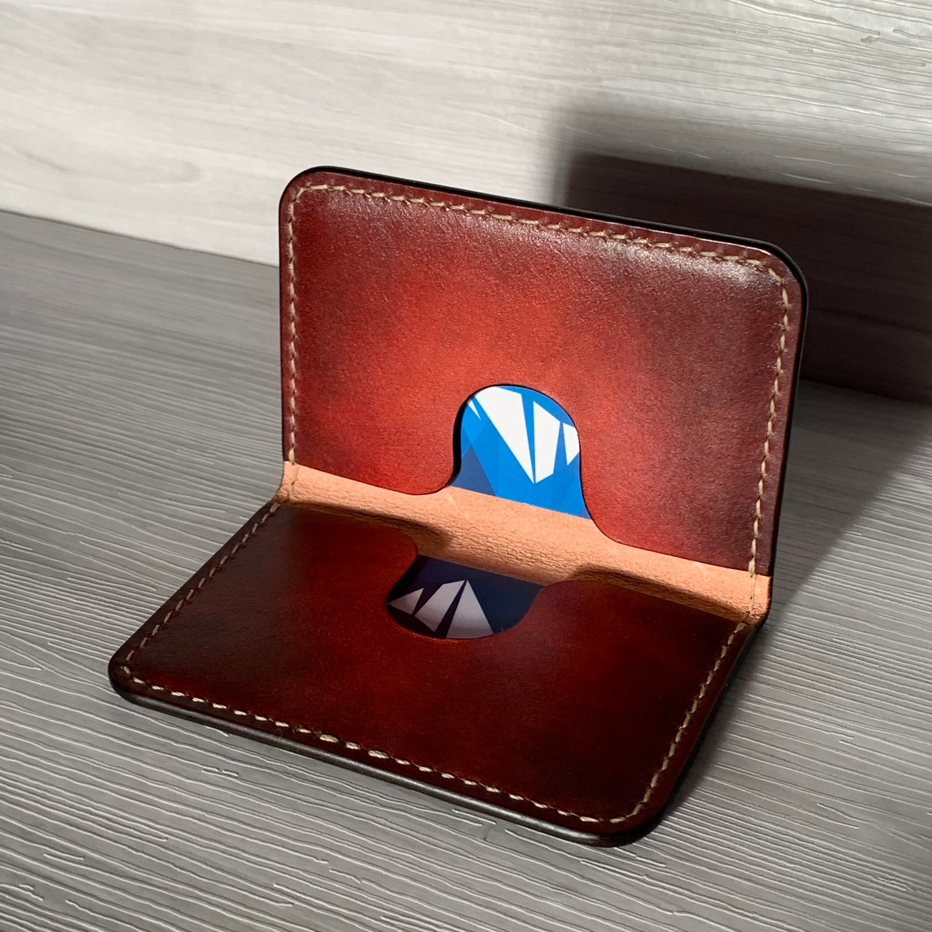 クレジットカード等が2枚が収納できるサイズ感なので、スマートに持ち運びができます。手染めならではの風合いがあり、使い込むほどに経年変化が楽しめるのも魅力。カジュアルにもフォーマルなスタイルにもマッチするデザインです。