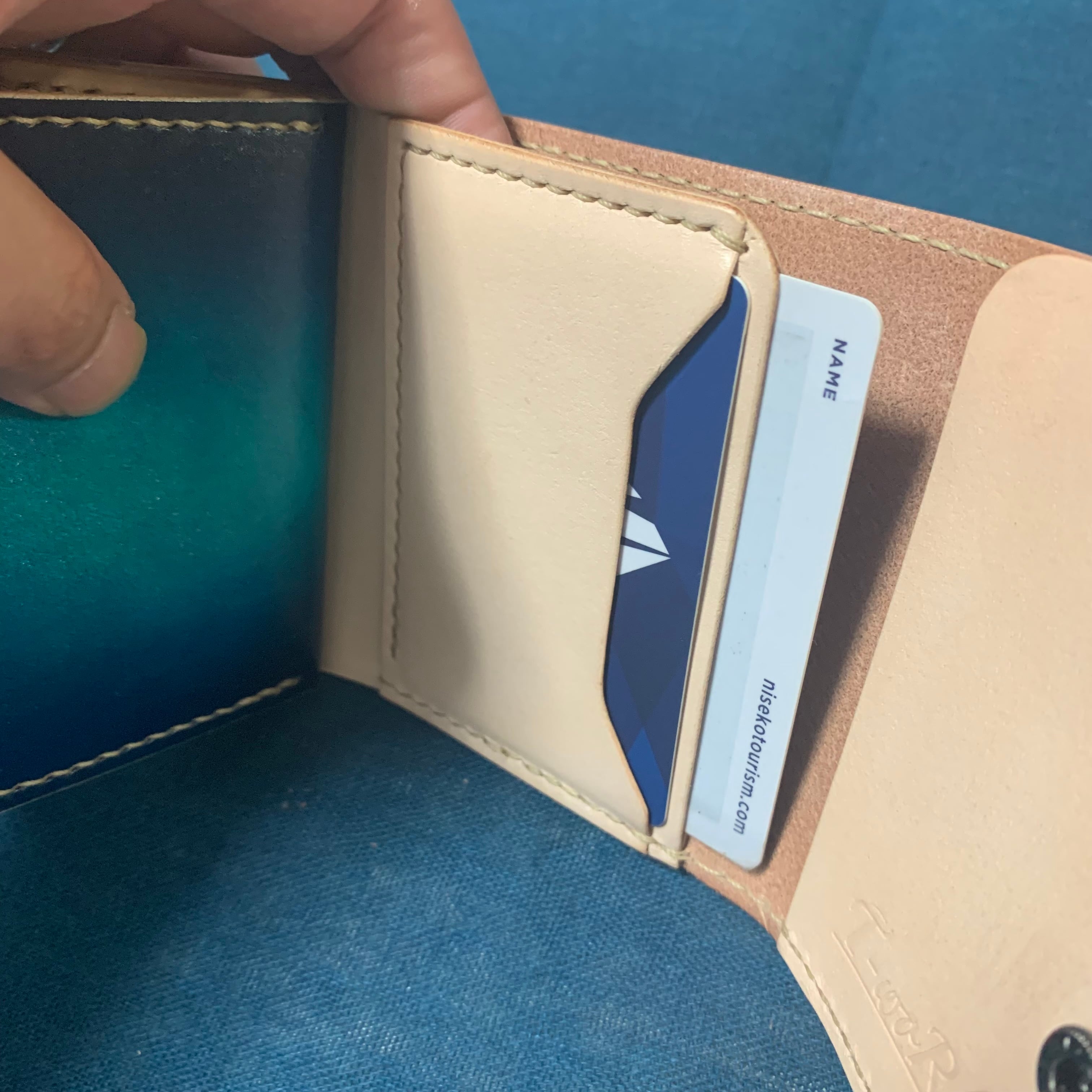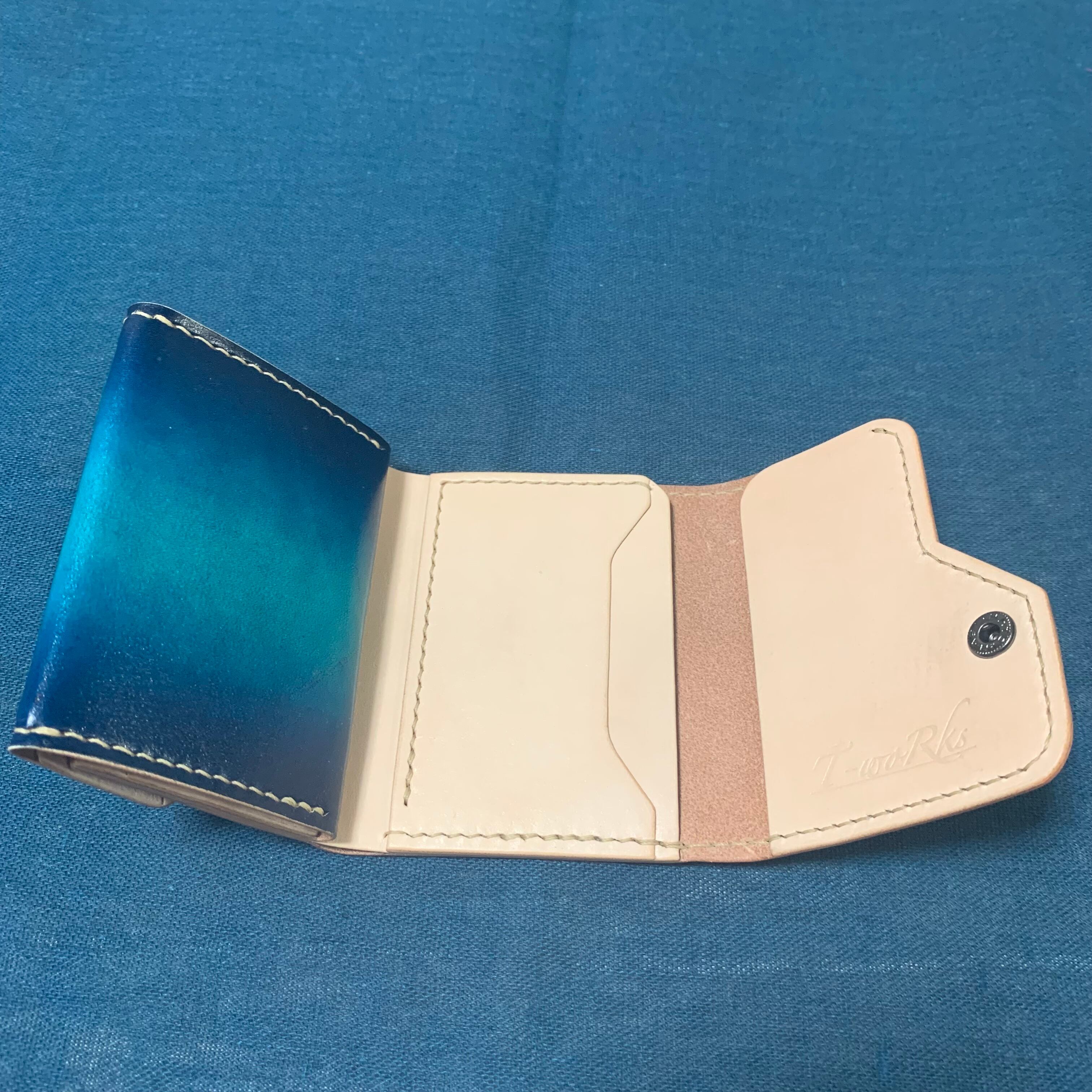 外装と小銭入れ外装をT-woRks シグネイチャーカラーであるRecollectionにて染め上げました。
